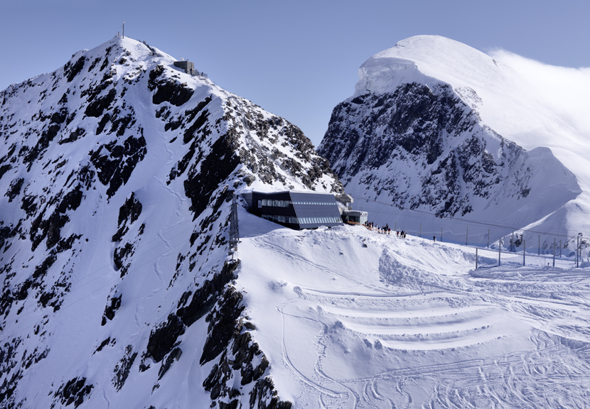 Das Gebäude liegt beim südlichen Ausgang des Verbindungstunnels zur Bergstation, wo der Gipfelfelsen aus dem Gletscher ragt. Die Gebäudeform wurde hinsichtlich Solarenergienutzung, Windexposition und Anfälligkeit für Schneeablagerungen optimiert.